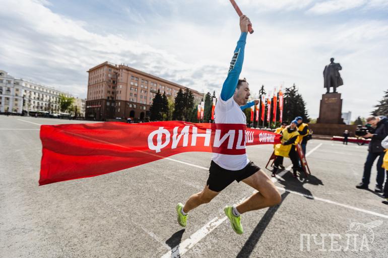 В этом году традиционную эстафету приурочили к 80-й годовщине Победы в Великой Отечественной войне. Маршрут пролегал по проспекту Ленина — от площади Революции до улицы Лесопарковой. Ради забегов в центре города перекрыли движение.