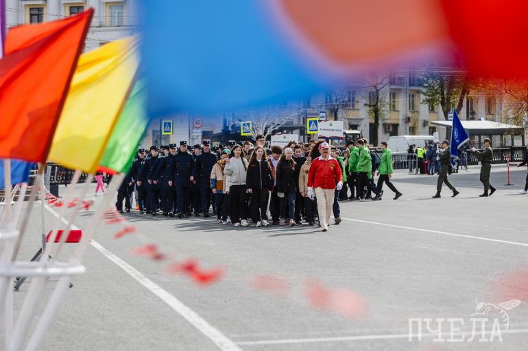 Участники прошли бодрым строем по площади Революции