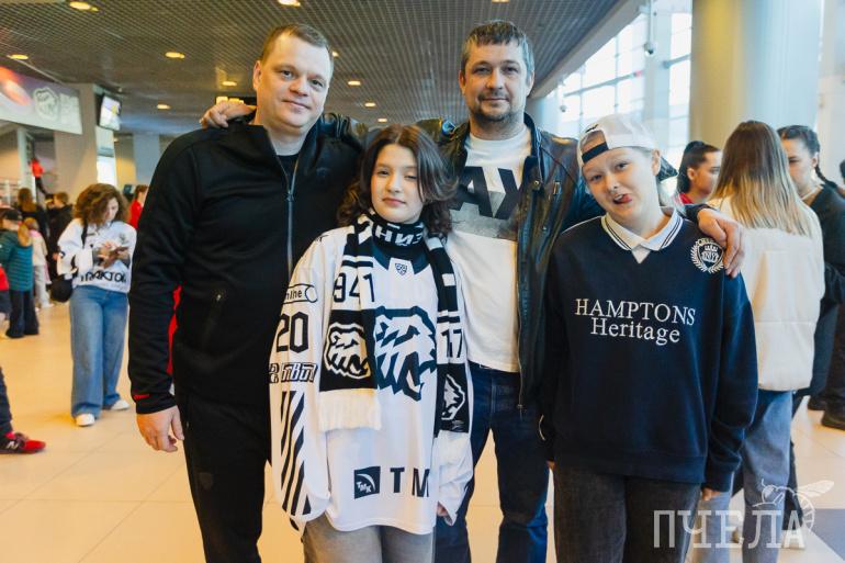 Болельщики пришли на хоккей с детьми