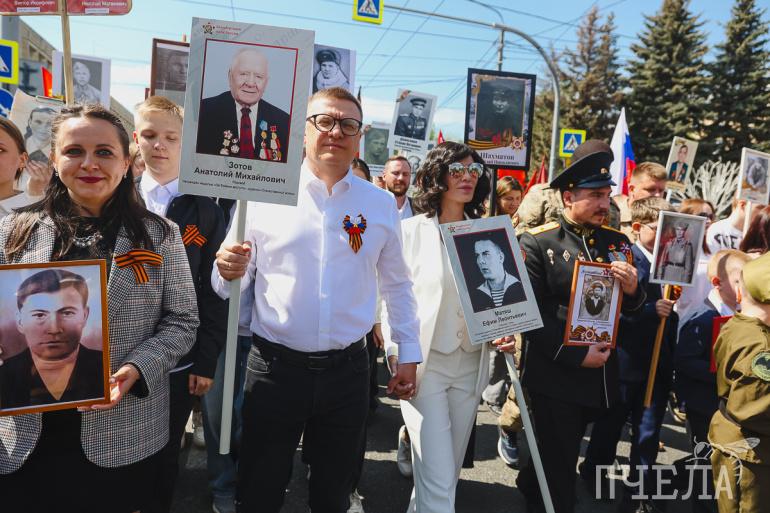 — Алексей Текслер нёс фотографию своего деда, Анатолия Михайловича Зотова, который воевал на Ленинградском и Волховском фронтах. Ирина Текслер держала портрет деда, Ефима Леонтьевича Матяша, служившего на подводной лодке Северного флота, участника парада Победы на Красной площади 24 июня 1945 года, — рассказали в пресс-службе главы региона.
