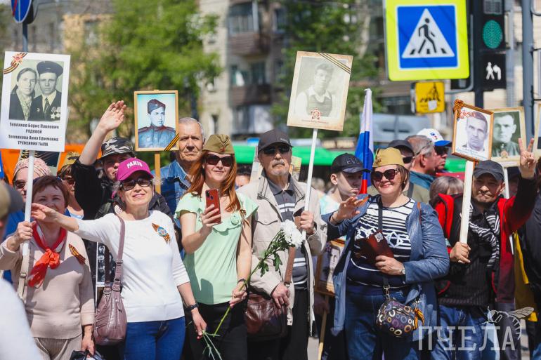 Многие из них присоединились к участникам акции и несли фотографии родных, сражавшихся против фашизма