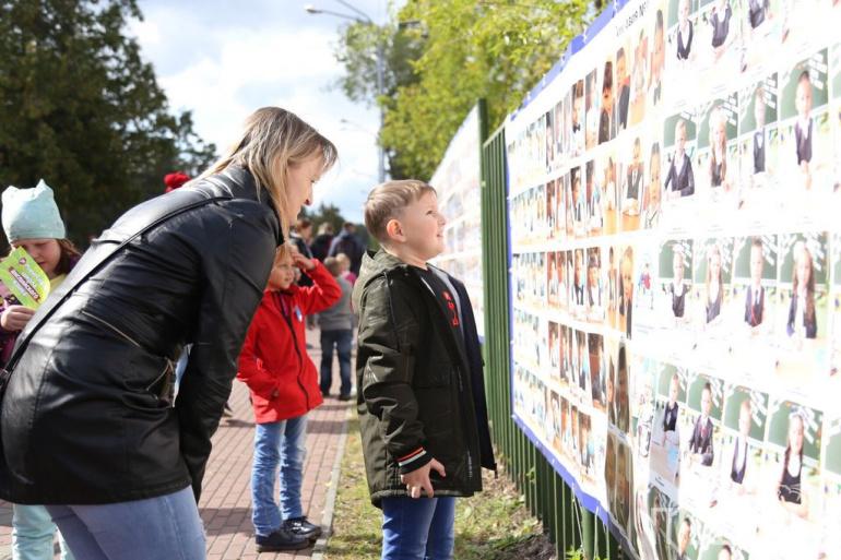 На аллее разместили более 13 тысяч фотографий первоклассников с их мечтами о будущем. Многие хотят стать полицейскими, врачами, ветеринарами. На пике популярности — блогер.