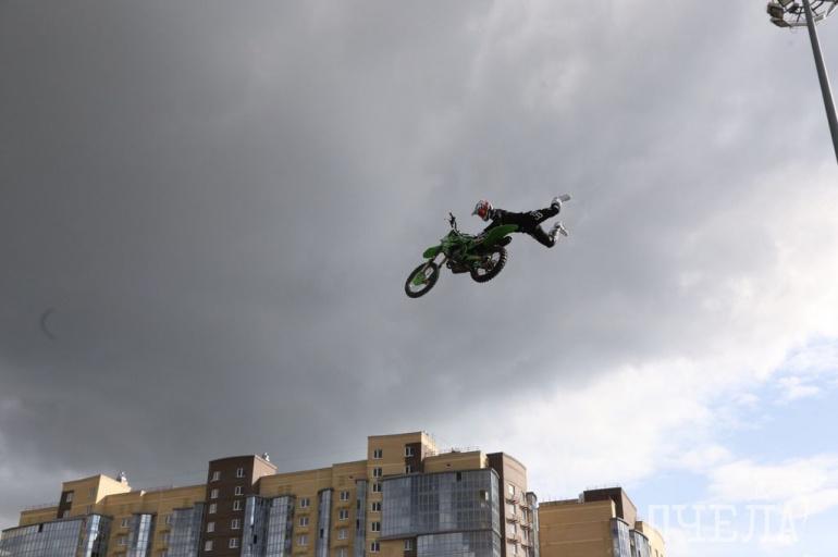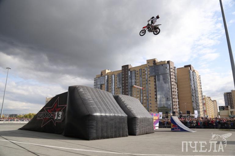 И неспроста: такого Челябинск ещё не видел. Экстремалы взмывали в небо на мотоциклах, велосипедах и даже снегоходах!