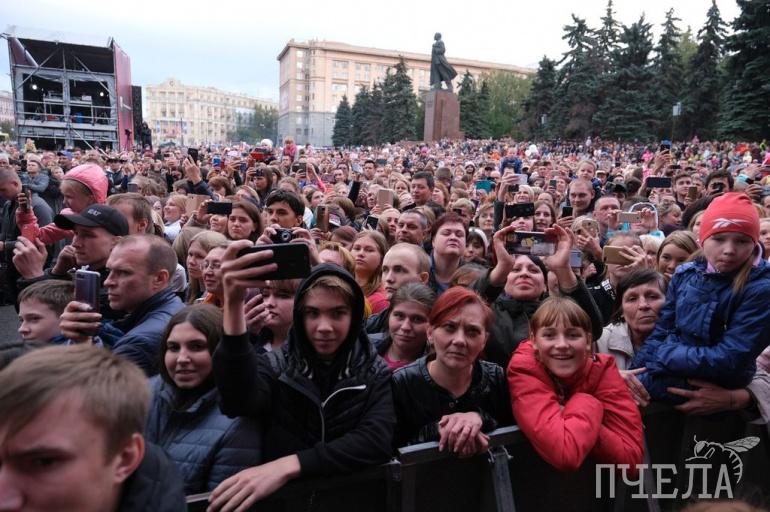 На площади Революции в самом разгаре праздничная программа в честь Дня города «Голоса и танцы Челябинска». Ведёт программу Дмитрий Нагиев. Горожан уже поздравил глава региона Алексей Текслер, выступила группа «А-студио». Впереди — Владимир Пресняков, а также DJ Feel и Dj Progect S-Brouther-S.