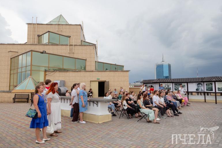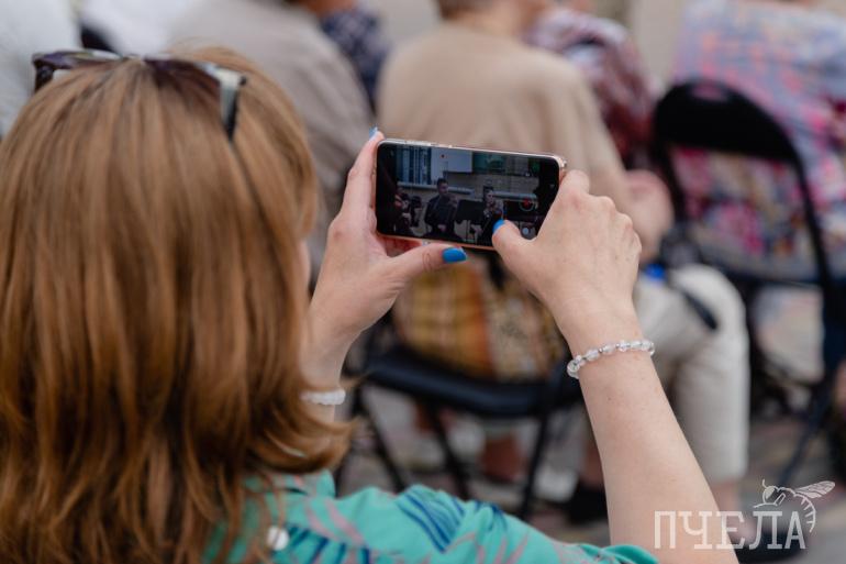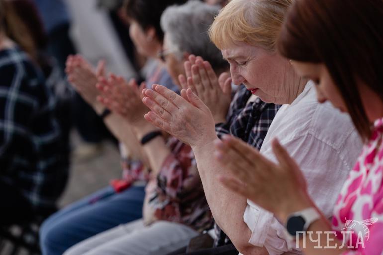 Под конец из-за дождя музыканты вместе со зрителями перебрались под крышу музея, но никто не расстроился, что концерт завершился в такой необычной обстановке.