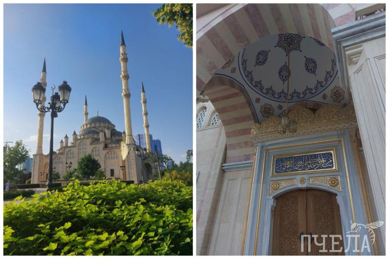 Ещё одно место, заслуживающее внимание, — это мечеть «Сердце Чечни». Особенно эффектно она смотрится в лучах закатного солнца, ведь здание облицовано турецким мрамором песочного оттенка. Мусульманское сооружение украшено золотыми написаниями из Корана. Мечеть известна своей сложной системой освещения, состоящей из трёх уровней: заливающее, акцентное и праздничное освещение. Все они подчёркивают архитектурные детали здания и придают ему уникальный вид в ночное время.