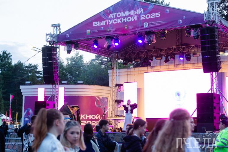 Насладиться музыкой и потанцевать можно было сразу на трёх площадках на любой вкус. В полночь на сцену вышли хэдлайнеры «Атомного выпускного» — популярный музыкальный дуэт Nansi&Sidorov, а уже ночью поп-исполнитель Коста Лакоста. Завершился областной выпускной встречей рассвета.