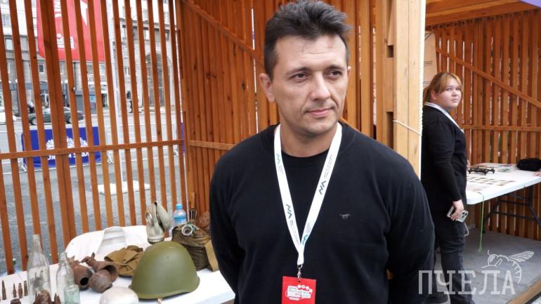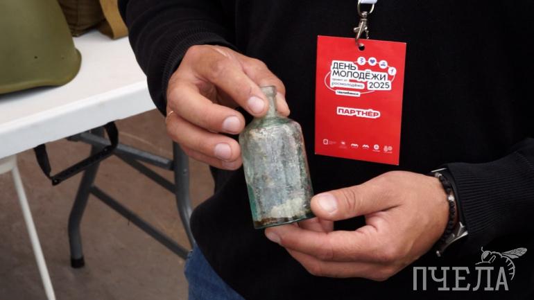 — Сегодня мы представляем военно-патриотический клуб «Танкоград» и нашу поисковую деятельность, которую мы ведём на местах боёв Великой Отечественной войны, в Пскове, Волгограде и на Синяевских высотах в Санкт-Петербурге, — рассказал председатель Челябинского местного отделения Российского военно-исторического общества Андрей Шумилов. — У нас очень много интересных экземпляров. Самый дорогой для меня — вот эта маленькая баночка, в которой находится свечка. Дело в том, что мы две недели искали разрушенную церковь, возле которой должны были находиться захоронения бойцов — местное население нам рассказало, что около церкви была авиационная воронка, в которую свозили с полей убитых солдат. И вот спустя две недели отыскали наконец вот такие баночки, в которые жители ставили свечи после разрушения церкви, а потом нашли и фундамент здания. И это момент для того, чтобы вернуться и продолжить поиски.