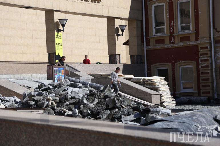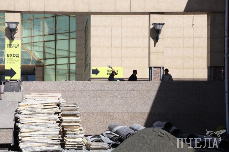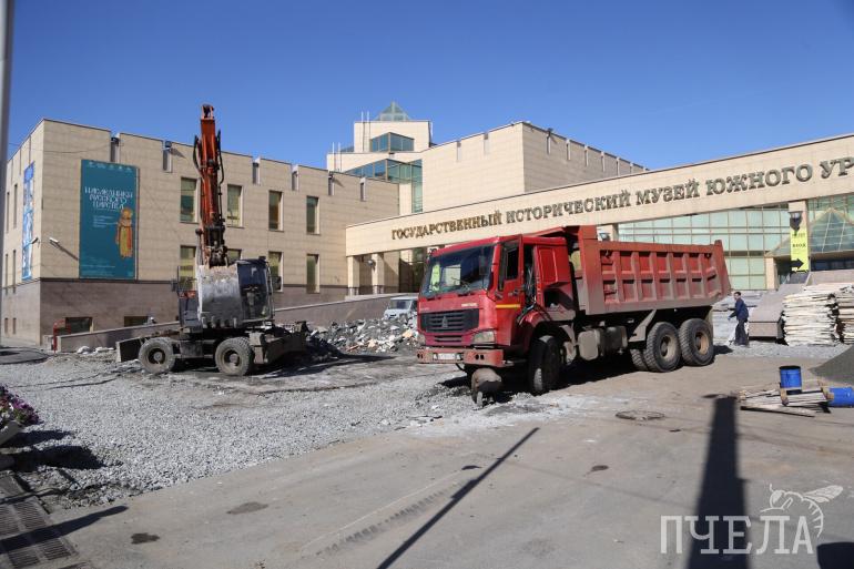 Капитальный ремонт государственного исторического музея Южного Урала в самом разгаре. Перед главным входом всё перекопано, рабочие заливают новые ступени. Как идёт ремонт стоимостью 51 миллион рублей, смотрите в фоторепортаже «Пчелы».