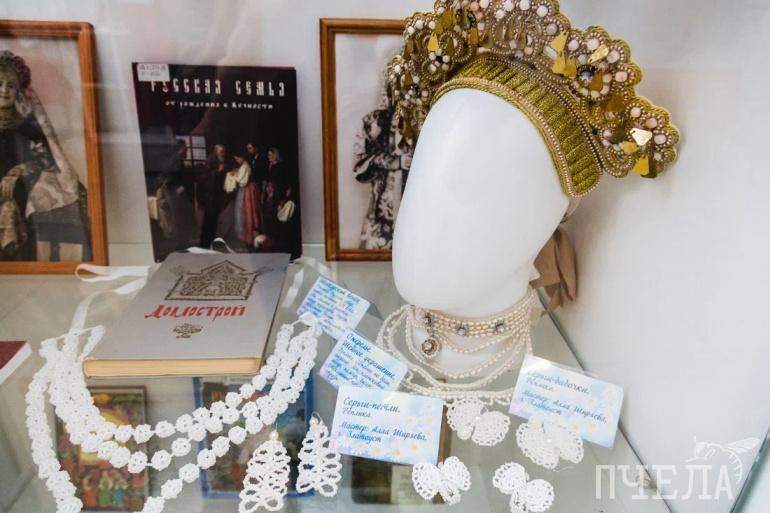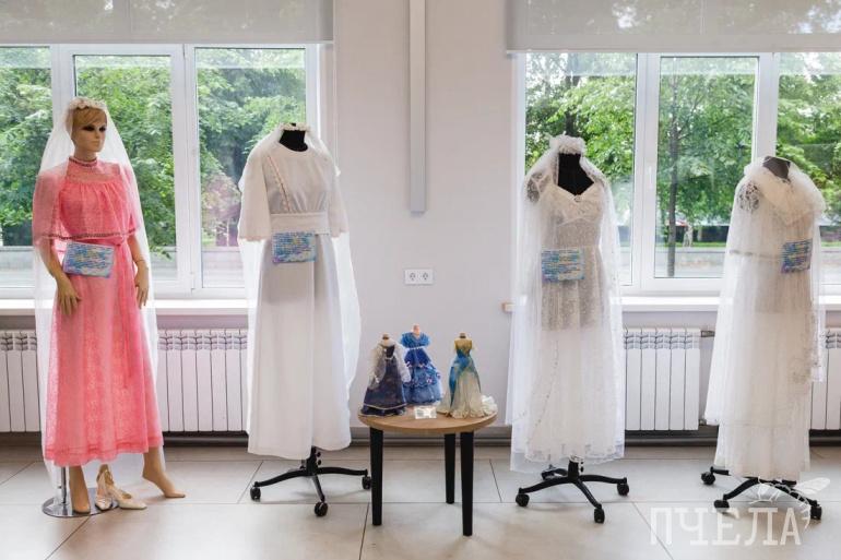 На выставке представили свадебные наряды из разных эпох. Например, платье тайного венчания и аутентичные свадебные наряды народов, населяющих Южный Урал.