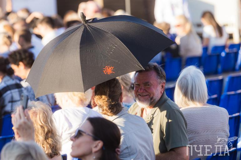 С погодой зрителям повезло, дождя не было, но зонты пригодились, чтобы прятаться от солнца