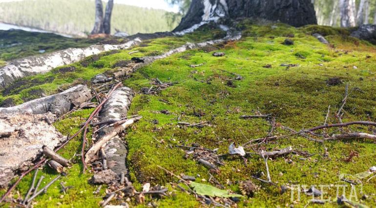 Полянки на берегу озера плотно покрыты мелким мхом