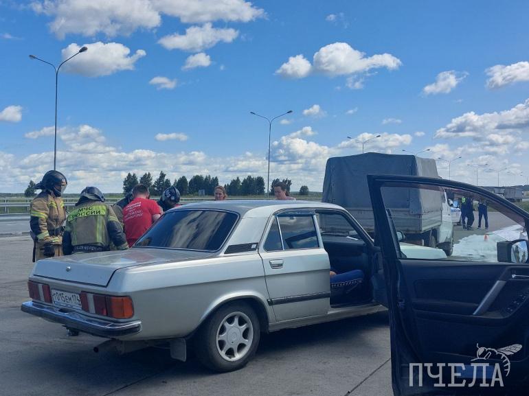 Внезапно вспыхнул огонь — из-за пробитого бензобака загорелся один из автомобилей. Тут же примчалась пожарная машина, из которой выскочили несколько огнеборцев. С помощью воздушно-механической пены специалисты потушили пламя.