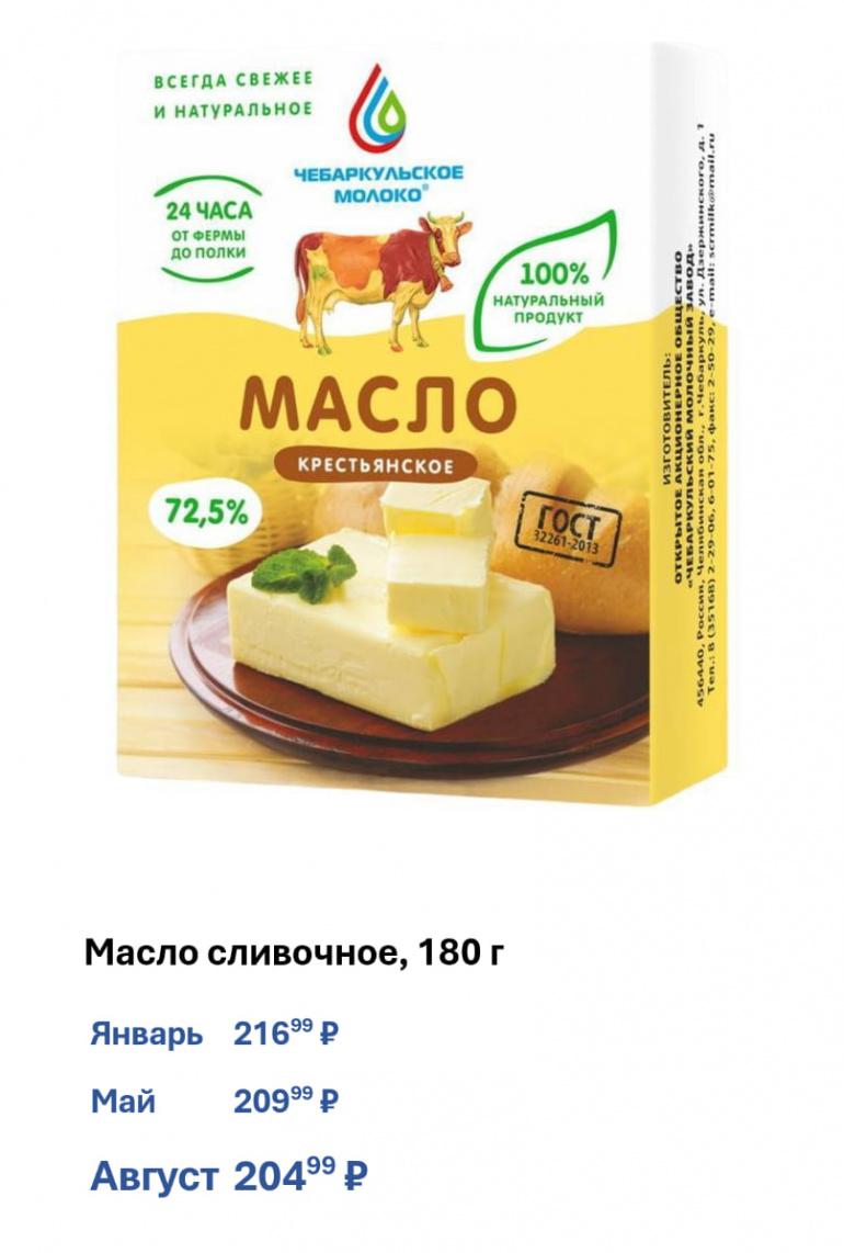 Сливочное масло тоже подешевело, хотя и не столь заметно, как предыдущие продукты. Пачка весом 180 граммов потеряла в цене всего 5 рублей или 2%.