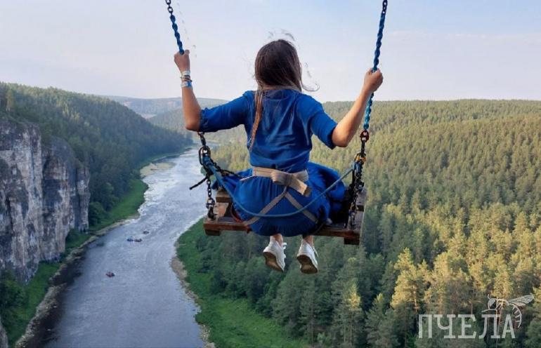 На Больших Айских притёсах в Саткинском районе можно прокатиться на качелях на краю обрыва