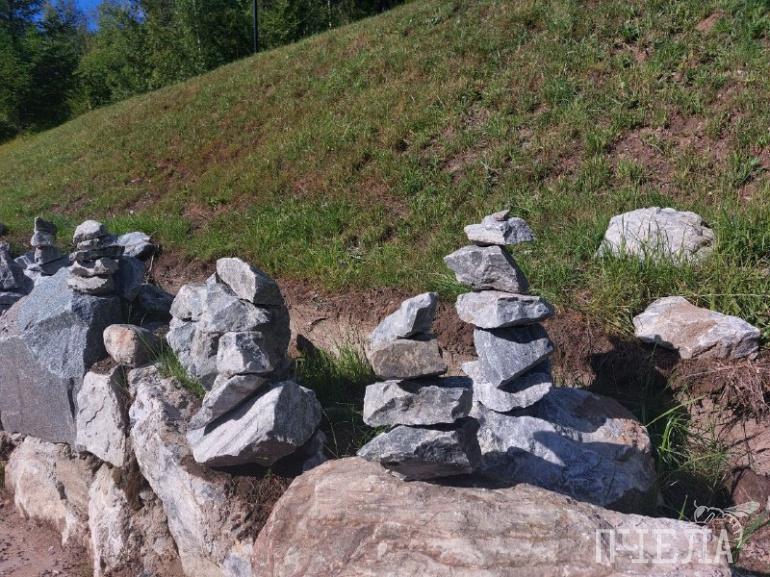 После этого вы пересекаете границу Республики Карелия. Сюда обязательно нужно захватить паспорт, потому что без него могут не пропустить. На этом моменте стоит не отвлекаться на разговоры или телефон, а почаще смотреть в окно, ведь дорога в Карелии очень красива. Она змейкой вьётся вдоль сосновых лесов, мелких речушек, водоёмов. Здесь ждут очень крутые склоны и множество скал, на которых можно заменить маленькие башенки, выложенные из камней. Они здесь неспроста. Местные верили, что леса, озёра и скалы населены духами. Чтобы задобрить их, люди оставляли различные дары, в том числе камни. А ещё есть поверье, что, складывая такие пирамидки, можно загадать желание и привлечь удачу.