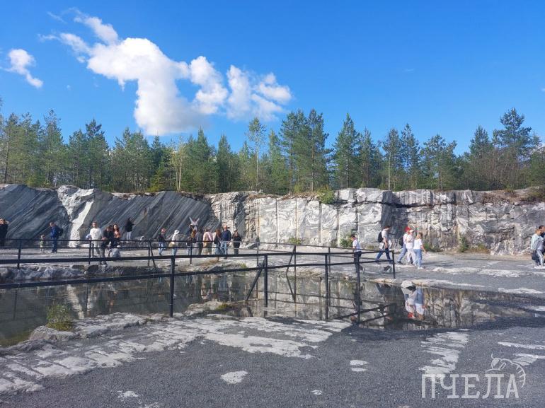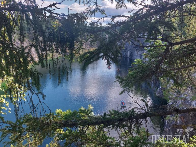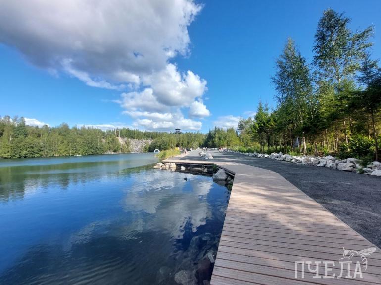 Самое «вкусное» мы оставили напоследок: это главная достопримечательность Карелии — горный парк «Рускеала». На площади в 32 гектара располагается множество уникальных природных объектов, которые заслуживают внимания. При входе в парк встречает большая карта, где обозначены все локации, всюду есть указатели, так что точно не заблудитесь. Прогулку стоит начать с небольшой пещеры, выйдя из которой попадёте на смотровую площадку. Отсюда откроется потрясающий вид на Мраморный каньон с лазурной водой, где можно прокатиться на лодке или сапборде.