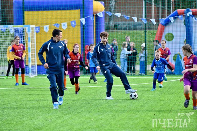 Поздравить ребят приехали профессиональные футболисты ФК «Челябинск» — Никита Маляров и Гаррик Левин. Они провели открытую тренировку для юных спортсменов.