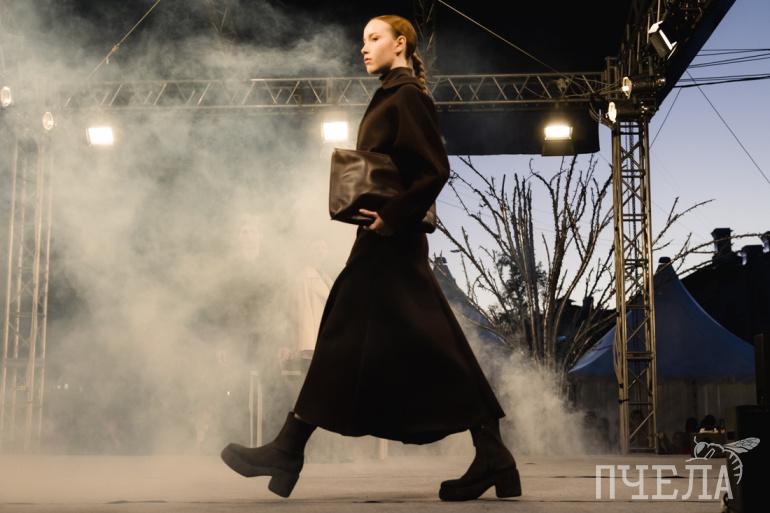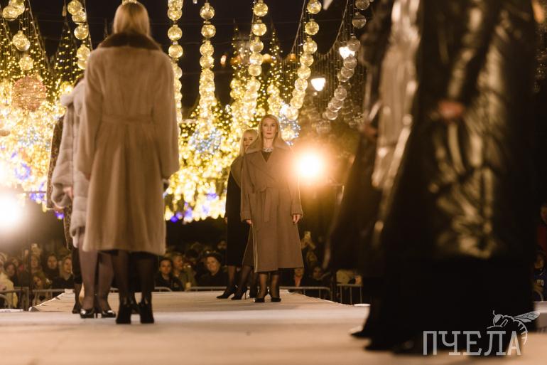 Зазвучала итальянская музыка, и на подиуме появились модели в категории 30+, которые продемонстрировали верхнюю одежду компании «Меркур».