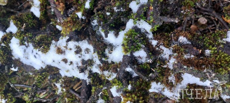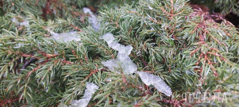 Белый порошок покрыл ветви деревьев
