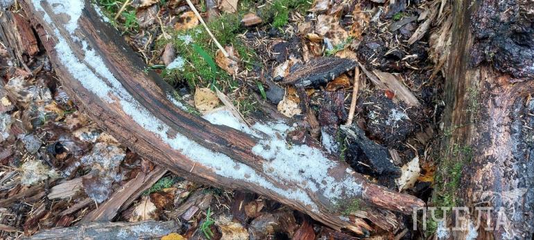 В сочетании с опавшими жёлтыми листьями выглядит необычно