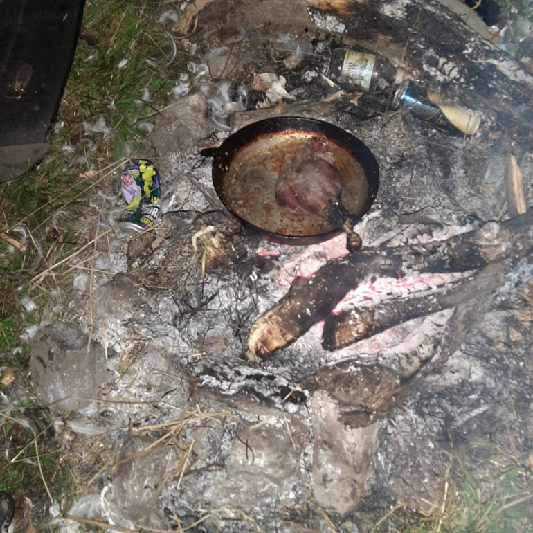 Полицейские прибыли на место, где застали двух пьяных мужчин с оружием и останки диких птиц. Оказалось, что подозреваемый застрелил двух лебедей, а после с 18-летним приятелем ощипал, пожарил и употребил в пищу одну из птиц. Чтобы скрыть следы преступления, мужчина закопал останки первого лебедя и вторую птицу.