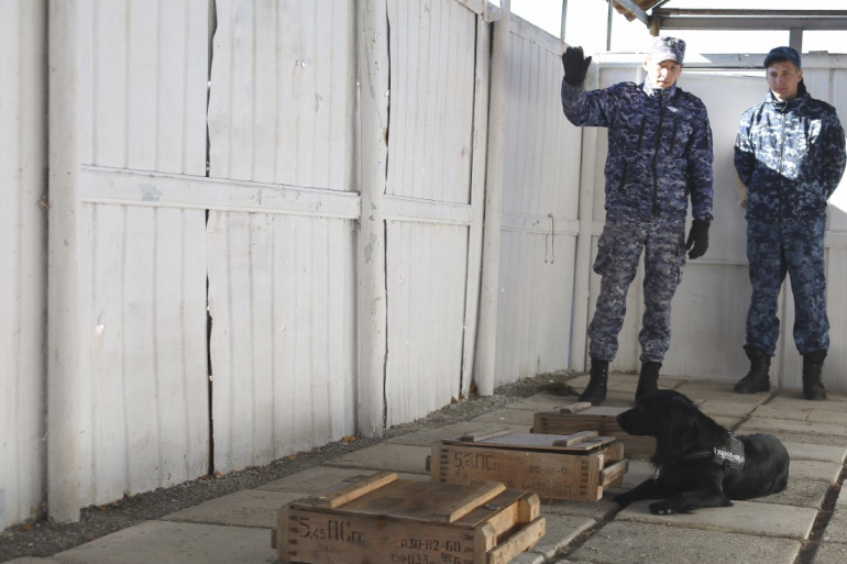 Собаки чётко улавливали по запаху, в каком ящике прячется что-то запрещённое