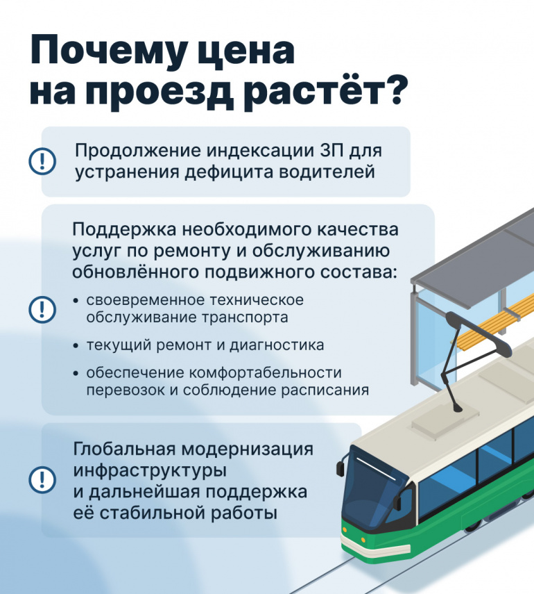 — Для обеспечения высокого качества транспортного обслуживания, решения проблемы нехватки кадров и своевременного обслуживания нового подвижного состава на основе анализа экономики перевозок с 1 ноября 2025 года будет проведена индексация стоимости проезда, — отметил первый заместитель министра дорожного хозяйства и транспорта Андрей Ксензов.