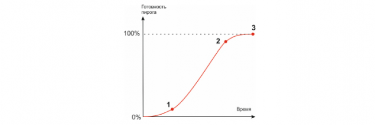 Время идёт, а процесс к своей конечной точке идёт крайне медленно. Но, наконец, мы достигаем точки 1 на рисунке. Пирог готов к выпеканию.