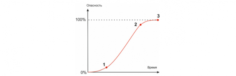 Точка 1 — риск, точка 2 — угроза, точка 3 — опасность
