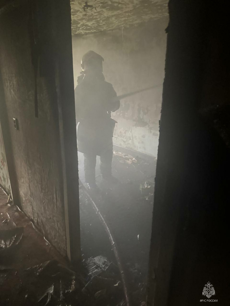 Когда сотрудники МЧС России прибыли на место, в горящей квартире никого не оказалось. Огнеборцы оперативно потушили пламя и не допустили распространения огня на другие помещения.