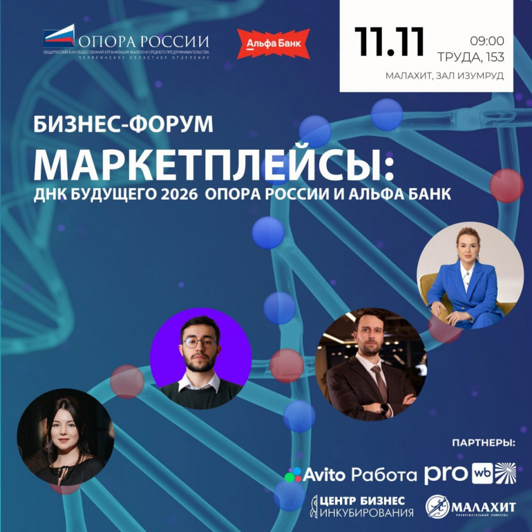 В Челябинске 11 ноября состоится масштабный форум «Маркетплейсы: ДНК будущего 2026. Опора России и Альфа Банк» для 300 селлеров, производителей, предпринимателей со всей Челябинской области и соседних регионов. Форум станет площадкой для живой дискуссии по проблемам отрасли, развития бизнеса и e-com торговли. Организатором события выступает Челябинское областное отделение «Опора России». Информационным партнёром выступил сайт «Пчела. Новости Челябинска».