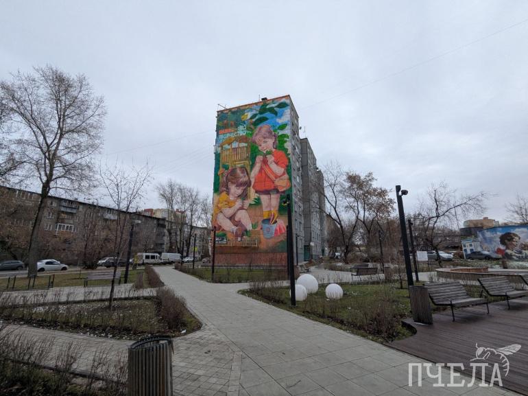 Челябинские художники завершили граффити с двумя маленькими девочками, играющими в песочнице. Теперь огромный и яркий рисунок украшает девятиэтажку в центре города, недалеко от «Алого Поля». Законченную работу сфотографировала наш корреспондент в понедельник, 10 ноября.
