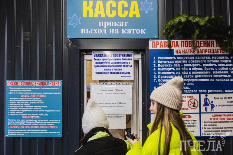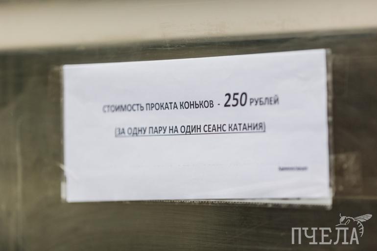 Для тех, у кого нет собственных коньков, предусмотрена аренда — стоимость составляет 250 рублей. Столько же стоит один сеанс катания.