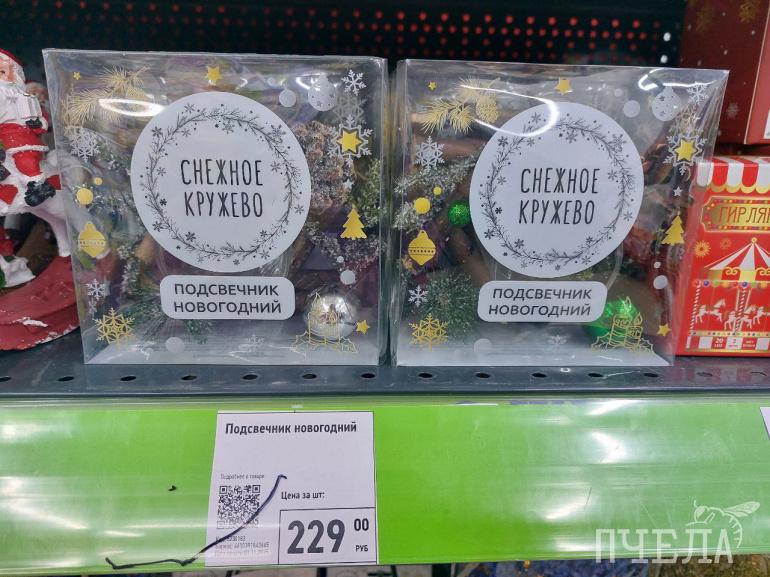 Ещё здесь есть новогодние подсвечники по 229 рублей, украшенные еловыми шишками и праздничными шарами, а сами свечи тут стоят 249 рублей. Гирлянду можно купить за 149 рублей, цена зависит от её длины.