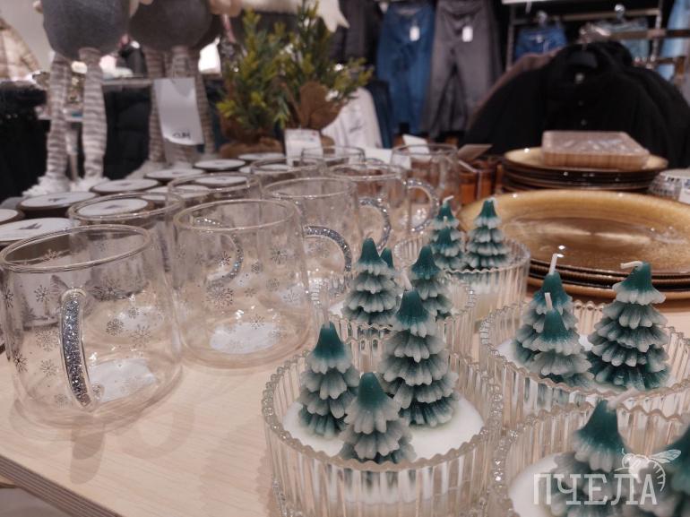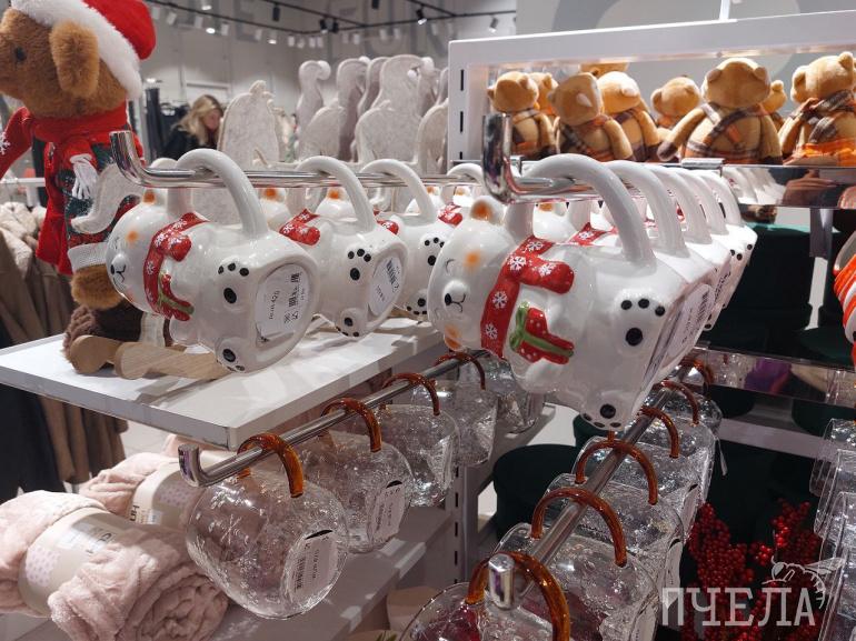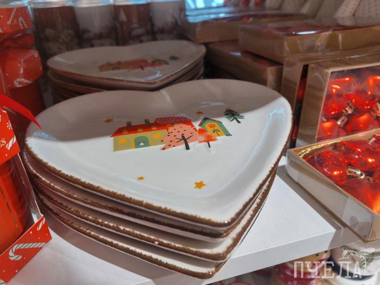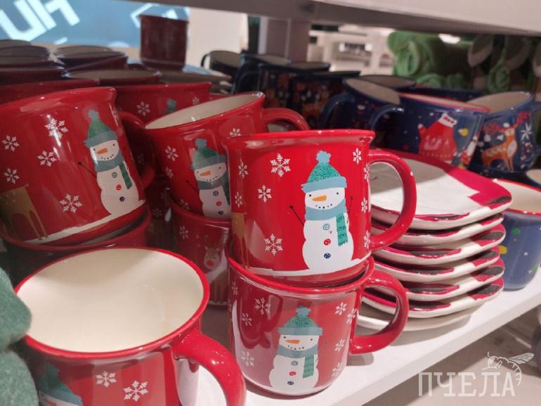 Здесь также можно купить тарелки и кружки в новогодней стилистике, которые добавят праздничного настроения, особенно сейчас, когда на улицах города до сих пор нет снега.
