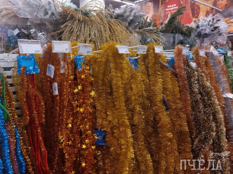 Мишура в виде еловых веток дороже — 120–140 рублей