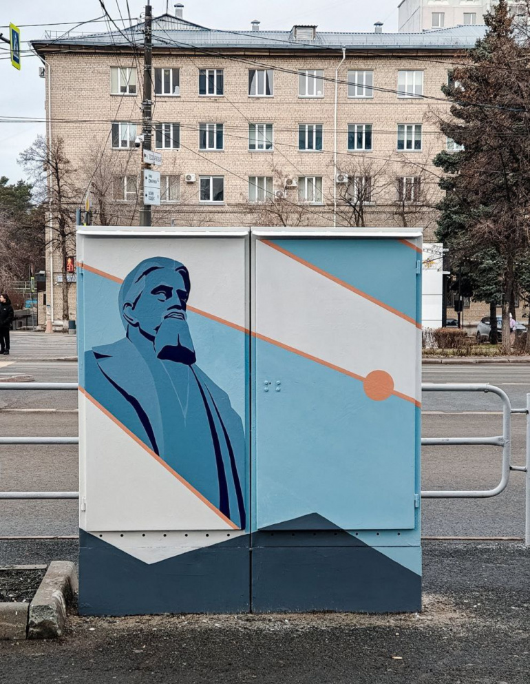 Такой яркий электрошкаф появился на улице Цвиллинга у мемориала «Вечный огонь»