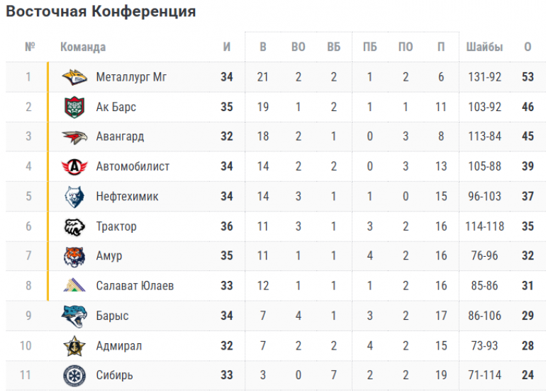Сейчас «Трактор» занимает шестое место в таблице Восточной конференции, набрав 35 очков в 36 играх.