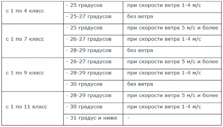 Напомним, решение о том, оставаться ученикам дома или отправляться на уроки в морозы, принимают с учётом этой температурной шкалы отмены занятий в школах.