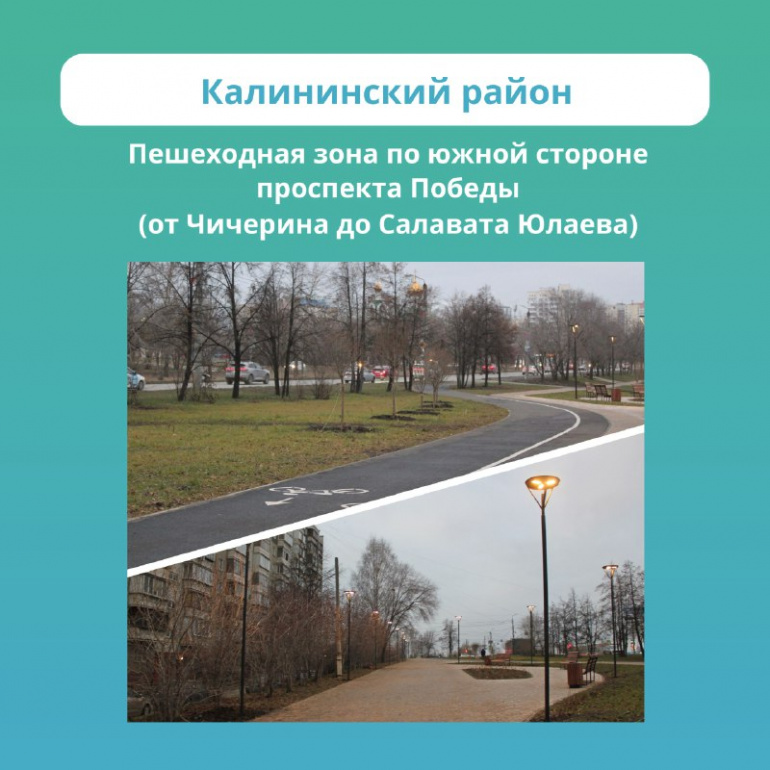Южная сторона проспекта Победы на участке от улицы Молодогвардейцев до Салавата Юлаева (первый этап — от Чичерина до Салавата Юлаева)