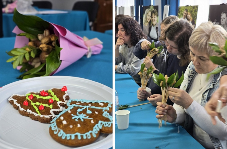 Все участники смогли проявить творческие способности на мастер-классах по изготовлению оригинальных съедобных букетов и украшению пряников. Их представили в рамках проекта «От мамы — маме», который позволяет обучать мам детей инвалидов новым профессиям.
