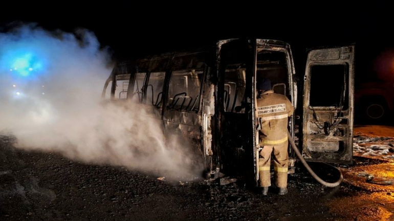 В автобусе ехали шесть пассажиров. Их отправили в Челябинск на попутном транспорте. Спасти микроавтобус не удалось, он выгорел.