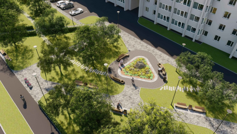 В рамках благоустройства сделают спортивную площадку, прогулочную зону и проведут озеленение.