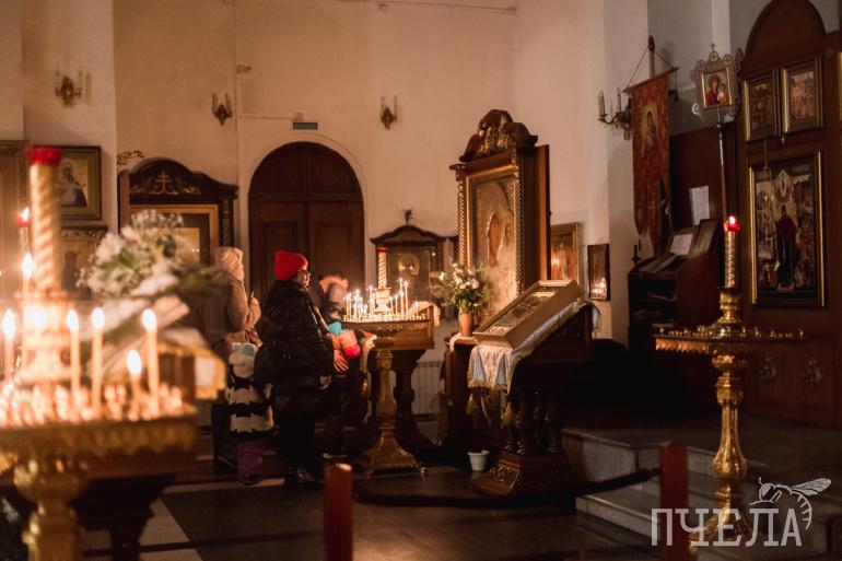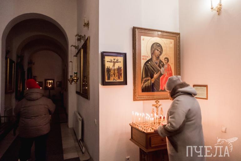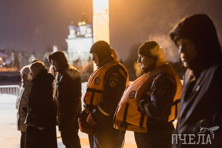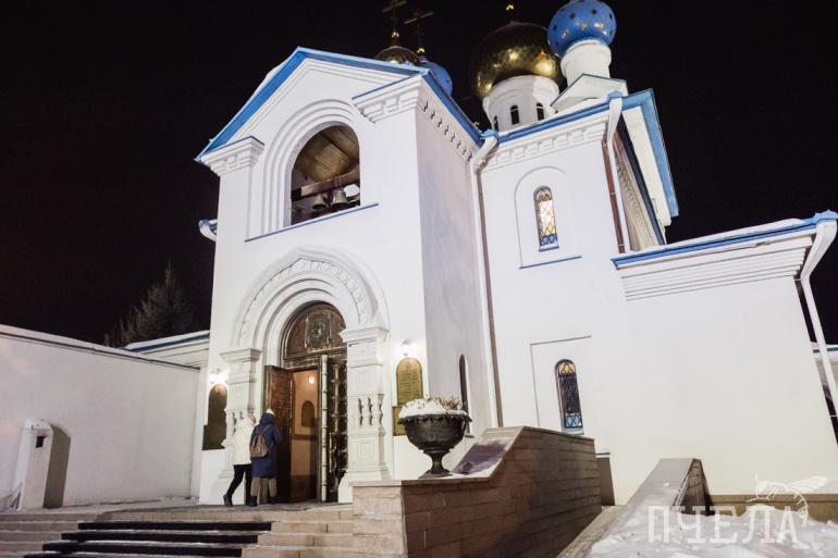 По традиции первые горожане потянулись к храму вечером в воскресенье, 18 января. Кто-то пришёл пешком, наслаждаясь морозным воздухом, другие приехали на машинах.