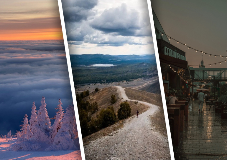 В проект попал снимок Константина Гончарова, который запечатлел вид с северной вершины горы Дальний Таганай. Здесь же оказались изображение горных пейзажей Карабаша от фотографа Андрея Шадрина и снимок челябинского фуд-маркета «Белый рынок» напротив Южно-Уральского государственного университета от Яна Аверина.