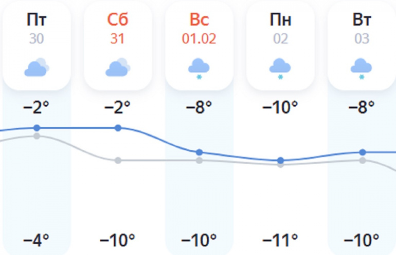 По данным сервиса «Яндекс.Погода», серьёзных морозов в ближайшие дни в региональном центре не прогнозируется.