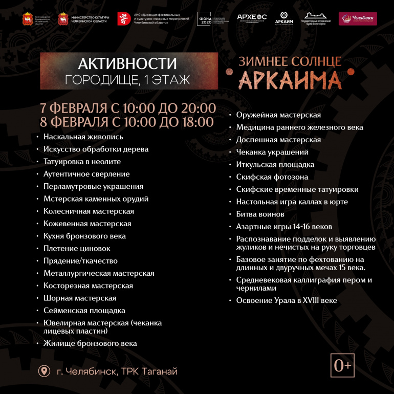 В эти выходные, 7 и 8 февраля, в Челябинске будет проходить III фестиваль исторической реконструкции «Зимнее солнце Аркаима». Публикуем программу всех событий на оба дня.