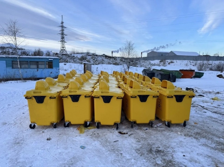 В Миассе на 30 контейнерных площадок установили жёлтые баки для вторсырья