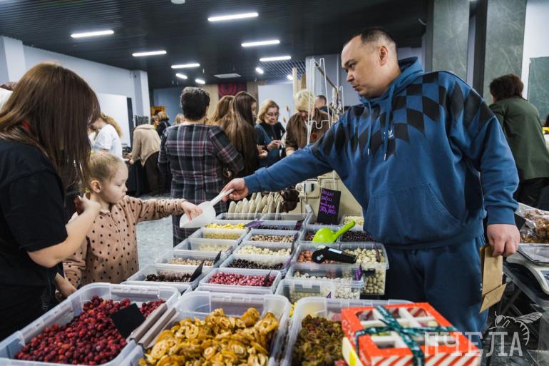 Фестиваль охватывает три этажа здания «Таганай». На первом развернули ярмарку мастеров, где каждый может приобрести различные украшения, деревянную посуду, варенья, мёд, шишки в сахарной глазури, косметику и даже музыкальные инструменты. Среди них можно увидеть необычный барабан ручной работы, который издаёт нежные звуки. Он называется глюкофон. Такие инструменты создаёт мастер из Миасса Анатолий Гуляев.
